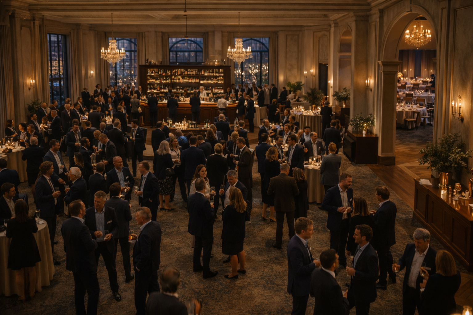 A more focused debate environment built around thematic sessions, editorial exchange and hosted hospitality.